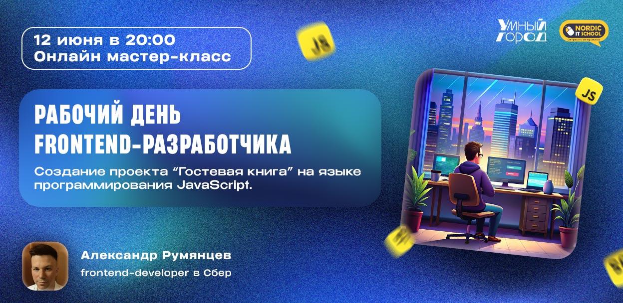 На мастер-классе мы расскажем, как проходит рабочий день начинающего frontend-разработчика, а также вы познакомитесь с основами Frontend-разработки и создадите интерактивную "Гостевую книгу". Вы получите практические навыки разработки веб-приложений и сможете задать вопросы в прямом эфире нашему опытному преподавателю.